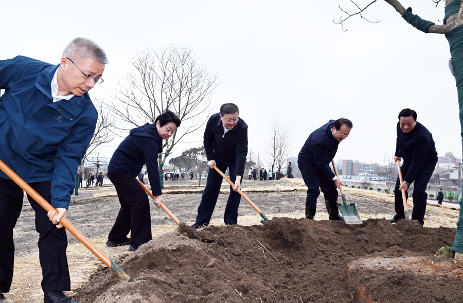 申城三月,玉兰绽放,春意盎然,又是植树绿化好时节。3月19日上午,市领导陈吉宁、龚正、黄莉新、胡文容、朱忠明等来到杨浦区复兴岛岛北开放空间植树点,参加全民义务植树活动。陈吉宁指出,人与自然和谐共生是中国式现代化的鲜明特点。要深入学习贯彻习近平生态文明思想,按照“十五五”规划部署,在扩绿兴绿护绿上拿出更多实招,在公园城市建设上不断提质增效,让人民群众有更多获得感、幸福感、安全感。